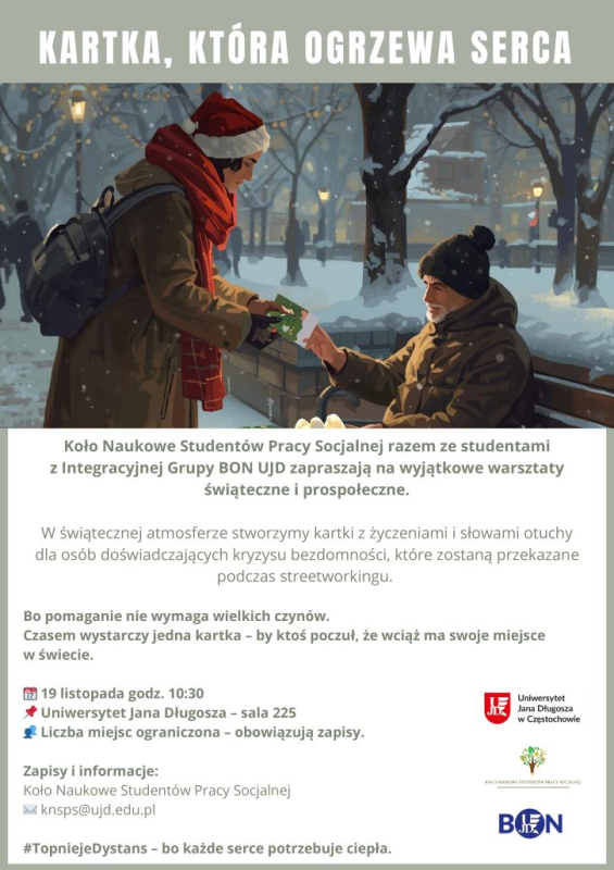 Zapisy i informacje: knsps@ujd.edu.pl; Koło Naukowe Studentów Pracy Socjalnej